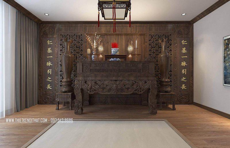 Mẫu tủ thờ gỗ óc chó cao cấp có thiết kế tinh tế, đầy quyến rũ và sang trọng.