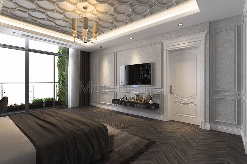 Tôi đang tìm kiếm một mẫu cửa gỗ óc chó phù hợp với phòng ngủ tân cổ điển biệt thự của mình.